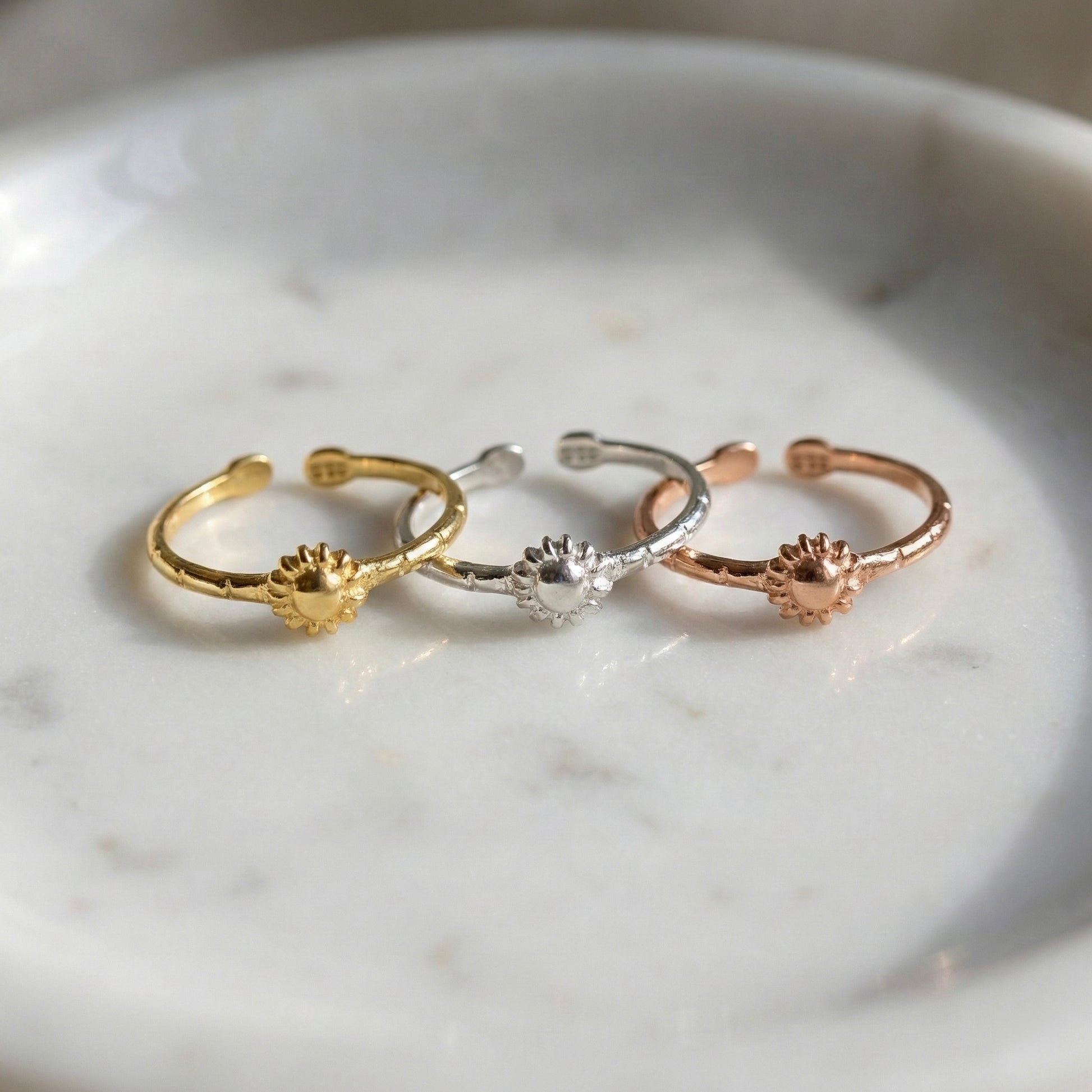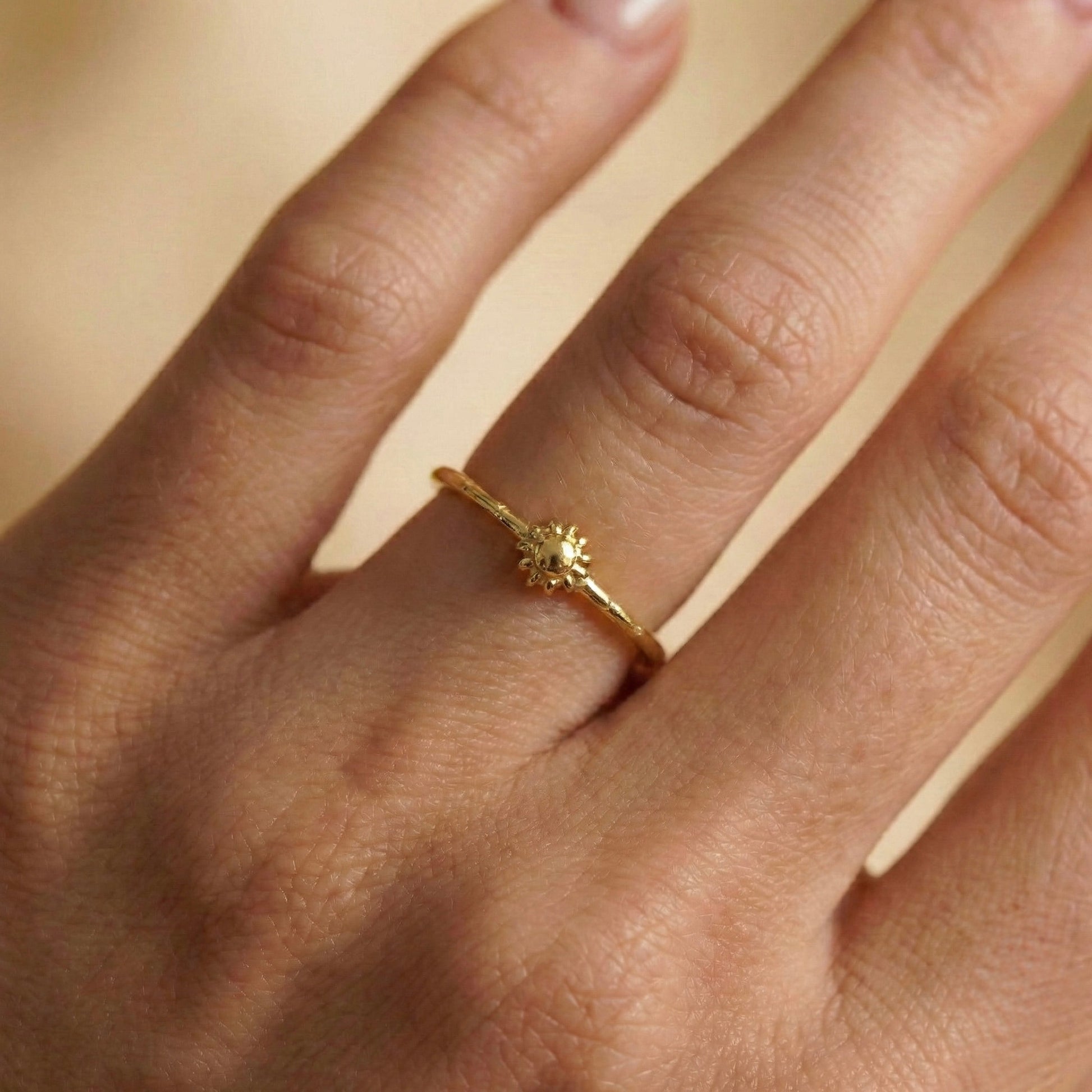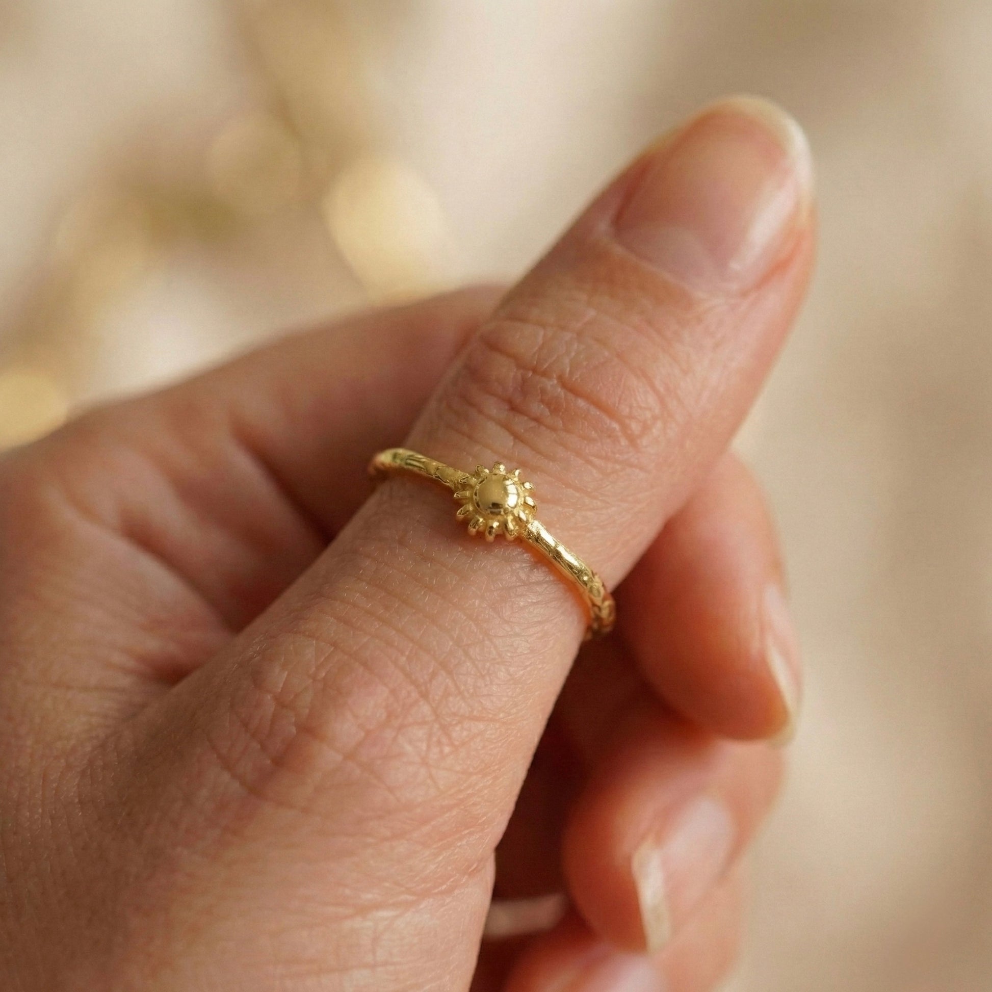 Hayatın kaynağı olan güneşin enerjisini en zarif ve minimalist haliyle parmağınıza taşıyan bu tasarım, narin duruşuyla her anınıza eşlik eder. İnce bant yapısı ve merkezindeki mini güneş figürü, sadeliği şık bir imza parçaya dönüştürür. Her bir Minon parçası usta zanaatkarların elinde şekillenir; bu nedenle el işçiliğinin doğasından kaynaklanan çok küçük detay farklılıkları her tasarımı eşsiz ve size özel kılar.