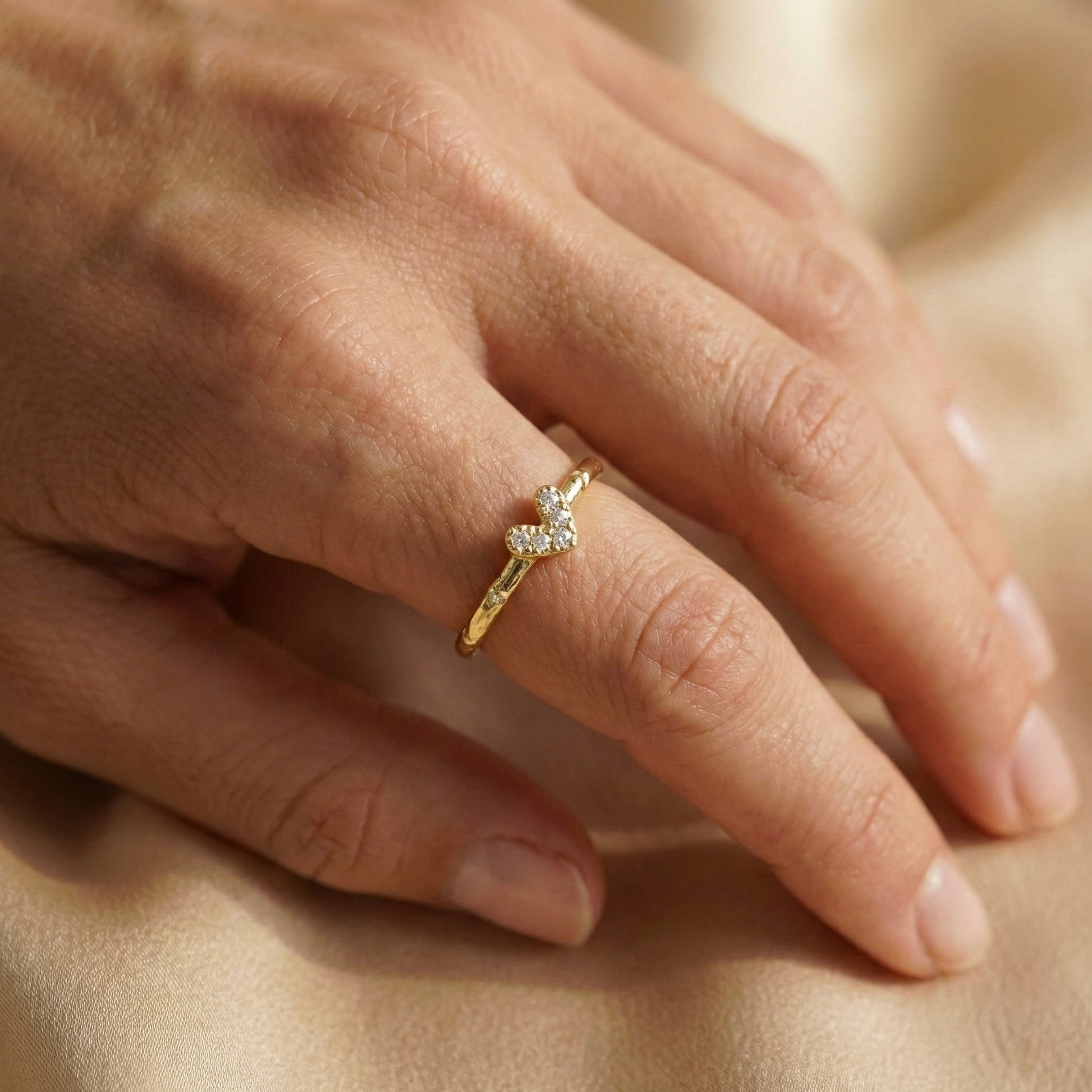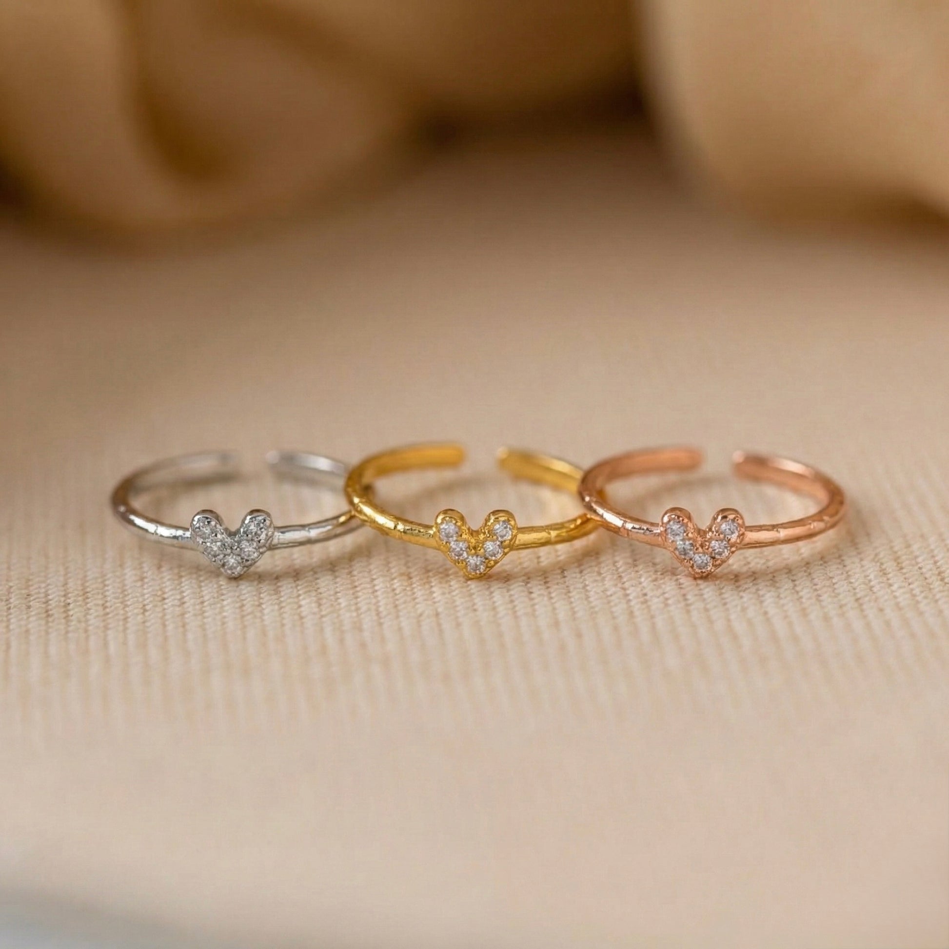 Sevginin en saf sembolünü parıltılı taşlarla taçlandıran bu tasarım, stilinize zarif ve romantik bir dokunuş katar. Merkezindeki taşlarla bezeli kalp figürü, el işçiliğiyle dokulandırılmış organik bant yapısıyla birleşerek modern bir görünüm sunar. Hem günlük kombinlerinizde narin bir ışıltı olarak kullanabilir hem de sevdikleriniz için anlamlı bir hediye seçeneği olarak değerlendirebilirsiniz. Her bir Minon parçası usta zanaatkarların elinde şekillenir; bu nedenle el işçiliğinin doğasından kaynaklanan minik detay farklılıkları her tasarımı eşsiz ve size özel kılar.