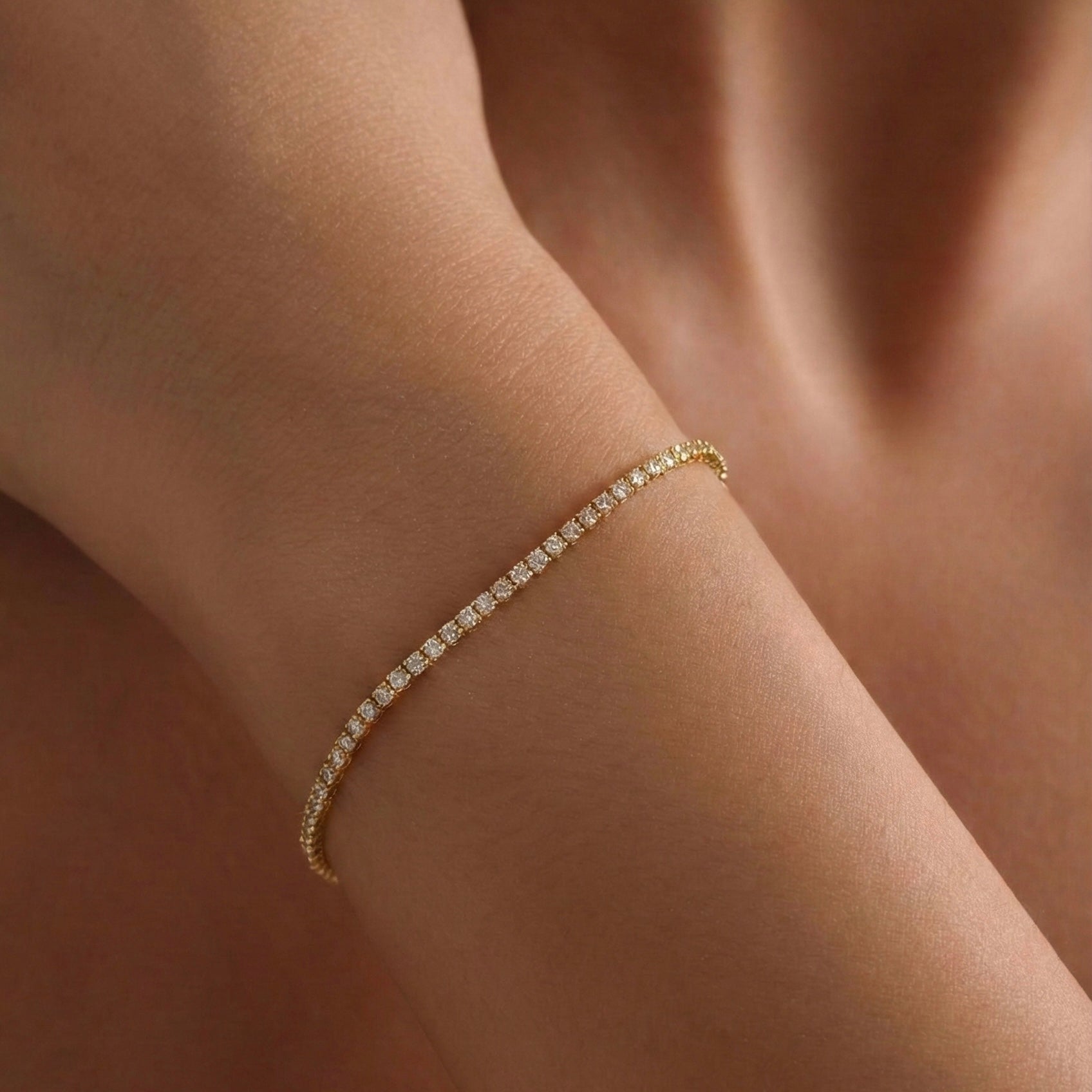 Zarafetin en saf ve en ince haliyle tanışın. Aura Petite, klasik su yolu (tennis) tasarımını ultra ince bir formla birleştirerek bileğinizde adeta ışıltılı bir ip gibi süzülür. Kesintisiz mikro kristal taşların yarattığı bu narin parıltı, gün boyu konforlu bir kullanım sunarken stilinize sofistike bir imza katar. Tek başına minimalist bir şıklık için ideal olduğu gibi, diğer bilekliklerinizle bir araya getirerek katmanlı (layering) bir görünüm oluşturmak için de mükemmel bir temel parçadır.