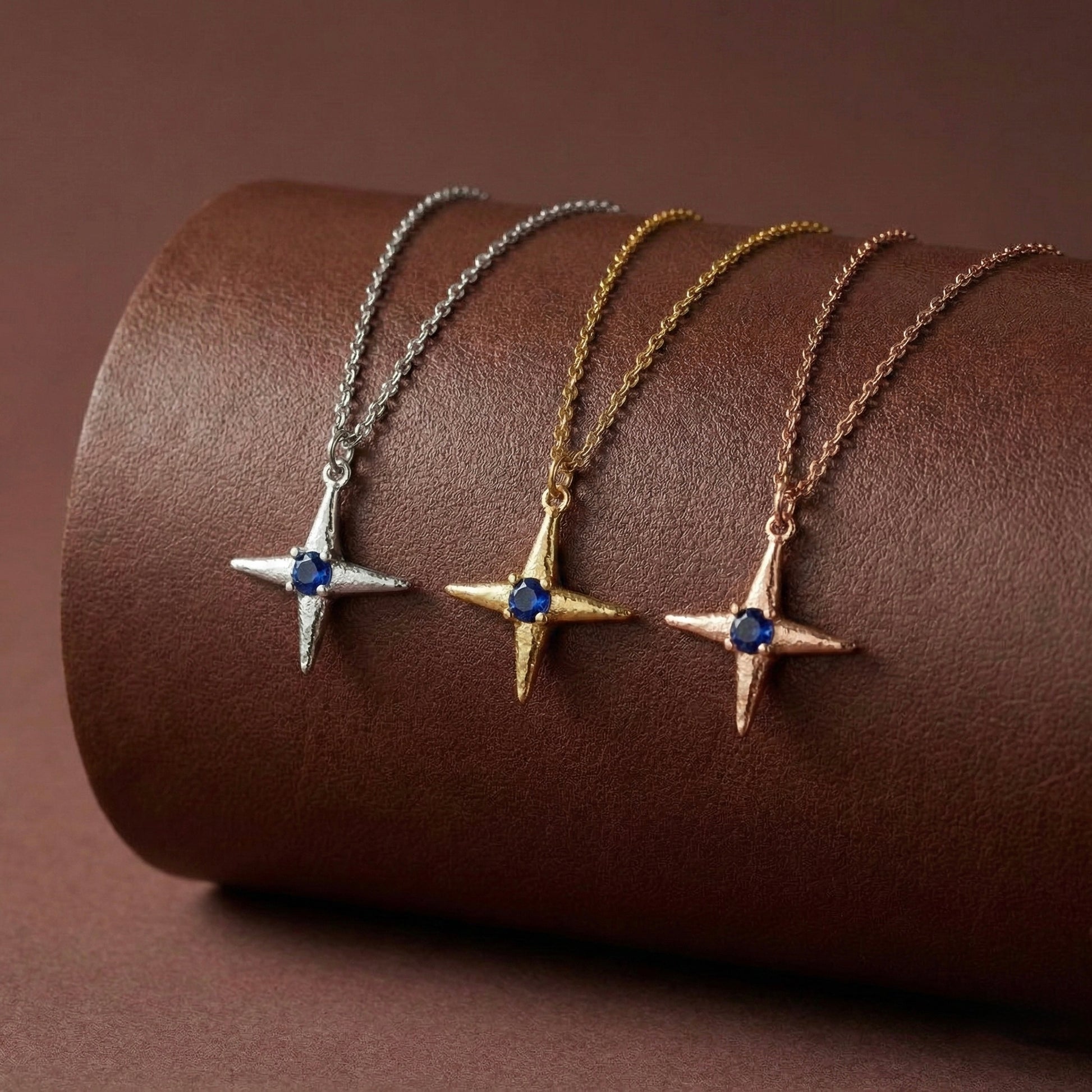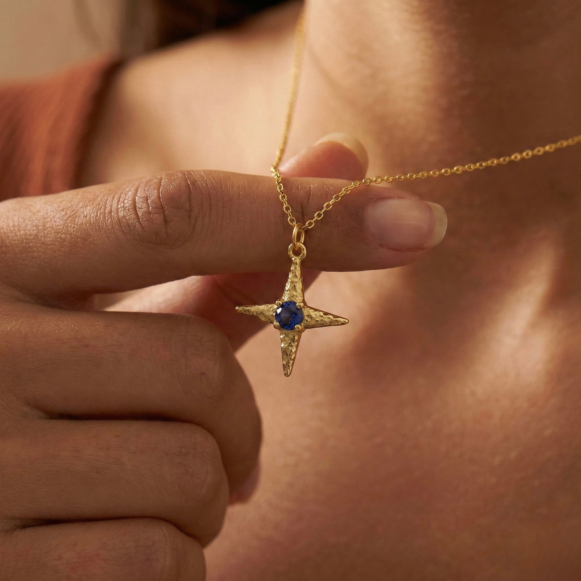 Gökyüzünün rehberlik eden ışığını ve okyanusun derin mavisini tek bir formda buluşturan bu tasarım, "az ama öz" diyenlerin yeni favorisi olmaya aday. Dört köşeli yıldız formunun üzerindeki ham ve organik doku, merkezindeki derin mavi taşla birleşerek boynunuzda zarif bir odak noktası yaratır. Minimalist çizgisi sayesinde her gününüze eşlik edebilecek kadar hafif, karakterli dokusuyla ise stilinizi tamamlayacak kadar iddialı bir parçadır. Her bir Minon parçası usta zanaatkarların elinde şekillenir; bu nedenle el işçiliğinin doğasından kaynaklanan minik detay farklılıkları her tasarımı eşsiz ve sadece size özel kılar.